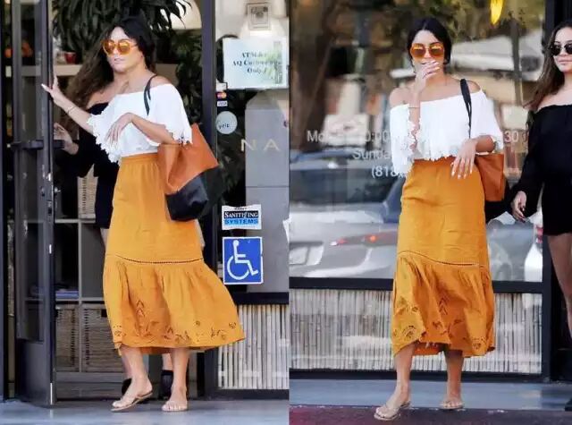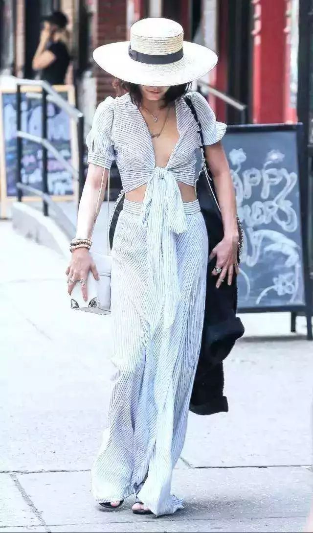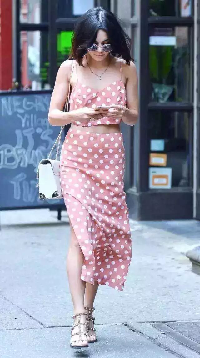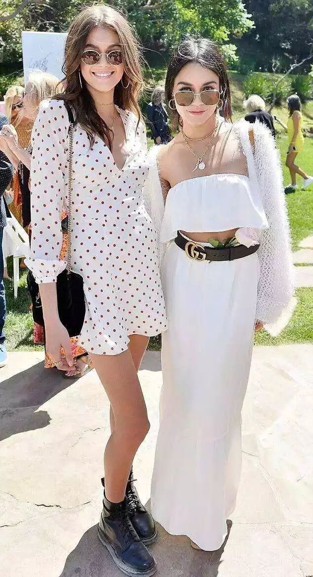 Vanessa近日出席活动穿的这一身也是美哭,雪纺短上衣和长裙的套装,露出纤细的腰部,遮住了比较粗的腿部,搭配一条腰带更加的chic,站在大长腿Kaia gerber旁边仍旧抢眼夺目。▼