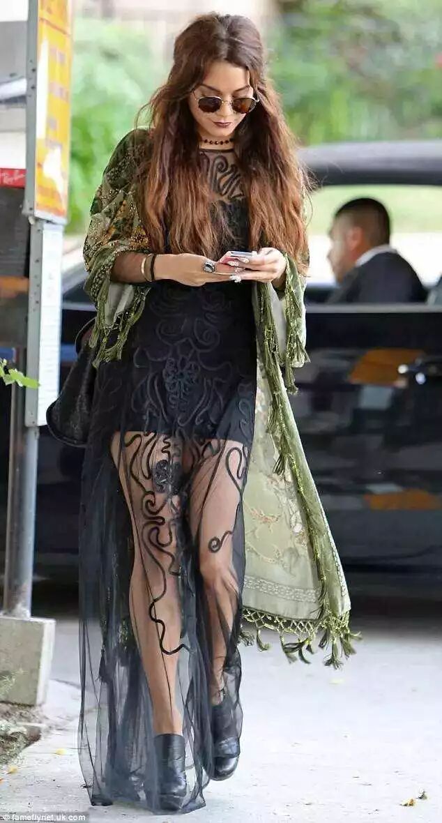 穿白色纱裙的时候Vanessa外披一件樱草黄外套,穿黑色蕾丝纱裙的时候则是选择了一件绿色民族风开衫,两款都美呆了。▼