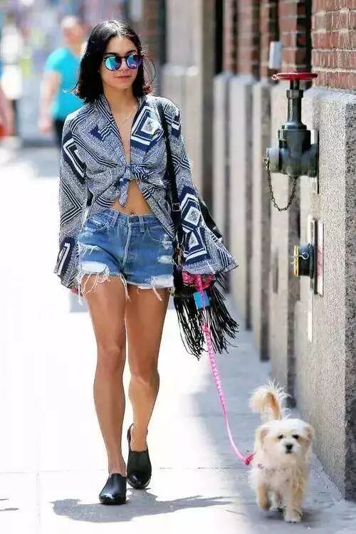如果对自己腿型不是很满意,夏天穿热裤的时候上衣记得在上衣下点功夫,转移视线。发现没有,Vanessa无论穿长裤短裤都非常注意腰线。▼
