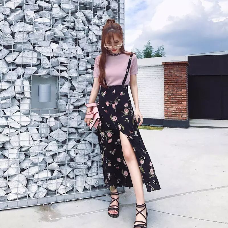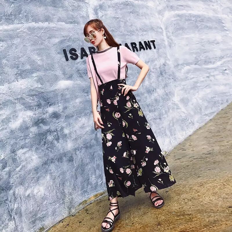 夏天防晒又美丽的秘诀就是背带长裤呀~搭配一件T恤就妥妥的。粉色的印花充满少女心,背带的设计充满青春气息。