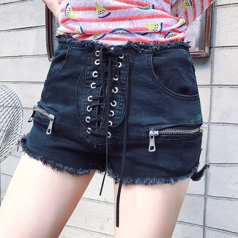 具有设计感的一条牛仔裤,在门襟处我们起眼系带的设计,街拍达人都有穿这样的元素的裤子。牛仔短裤,夏天不可缺的经典好单品~