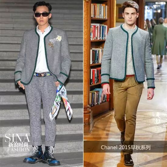 除了Chanel之外,能让权志龙频频剁手的品牌还有Saint Laurent。每次权志龙穿Saint Laurent的时装,都会立即成为爆款,撞衫也自然无法避免。来自Saint Laurent 2015春夏的这款条纹亮片西装,就让权志龙与Lady Gaga撞衫。同样是带着些“妖媚”的时尚风格,两人谁更帅气呢?!