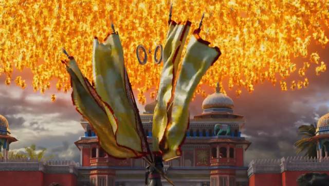 这回就轮到特效来说话,预告片中,孙悟空金甲在身,背后超大号的大圣旗及其拉风,甚至还有螺旋桨功效。众所周知,当孙悟空披上这套大圣战袍,肯定是已经脱离师门,要自己开创一番“事业”了。所以在片中,我们看到了孙悟空大战类似天兵天将的场面,以及一个镜头中,孙悟空再战如来,惊鸿一瞥。泼猴这次要玩大了。