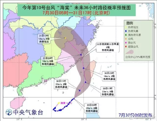 预计今天夜间海棠将以热带风暴的强度登陆我省中北部沿海,一天之内两连击,风雨小不了!台风红色预警信号依然生效中,后续估计要上暴雨红色。