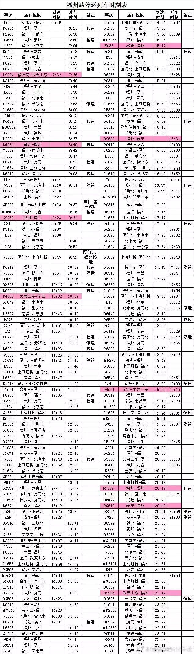 截止目前,福州站停运列车如下表(点击查看大图):
