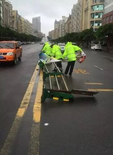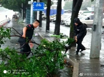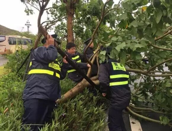 9号台风登陆后,福州象园所加强辖区巡查,林浩等民警冒着大雨在国货东路、长乐南路等干道上清理倒伏、树枝折断的行道树十余棵,清理被台风刮倒、影响道路通行的各种指路牌、共享单车、垃圾桶十余处。