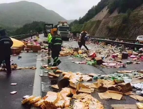 3、 沈海高速霞浦辖区1902K货车货物散落路面,AB道交通管制,现场正在紧急清理当中,请过往司机注意改道。