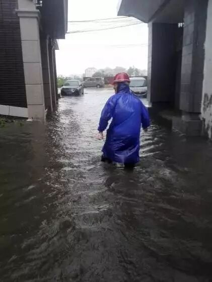 【福清部分路段有积水,出行注意安全】福清龙田龙泰路与龙安街交叉口附近约有几十米积水路段,积水约半米深,镇村干部在巡查,在疏通路段,确保附近百姓安全。