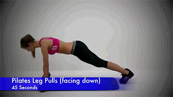 7、俯卧撑姿势,手臂伸直,做侧踢腿动作。