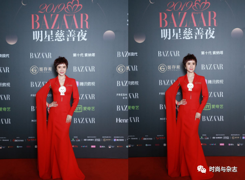 喜欢张扬又轻熟火辣的时尚色彩,大红色的亮彩不失为吸人眼球的一种最直接体现,像金巧巧所穿的这款大红色长款礼服裙就特别适合走红毯的背景融合,其中长袖及一侧外漏的飘肩带看起来设计得别出心裁。