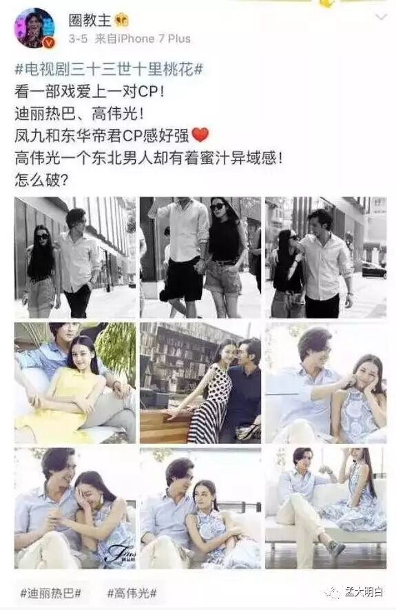 CP粉疑惑为什么合照里没有出现迪丽热巴,鹿晗粉丝则拍手称快,说这是鹿晗表示自己拒绝炒CP。营销号也闻风而动,就这么几张照片都能出一套高考分析大题了。