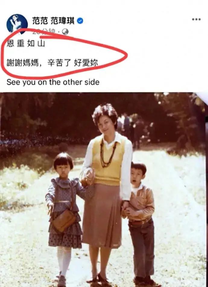 近期,范玮琪发表了与母亲合影的照片,并坦承自己正在承受母亲去世的痛苦。