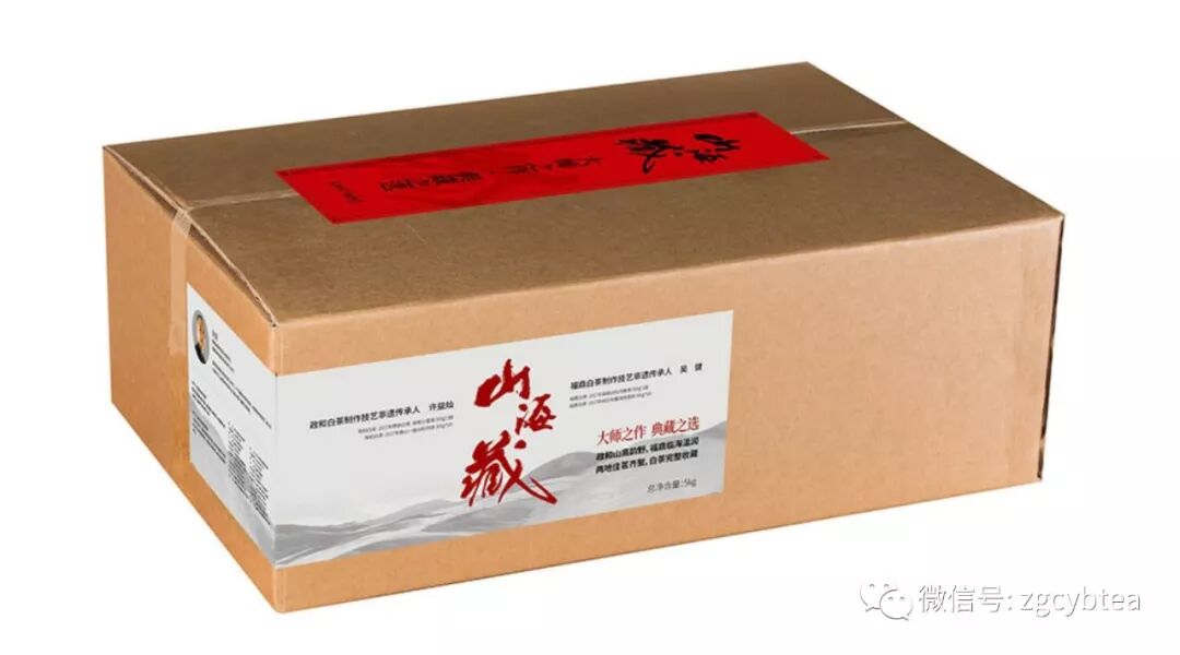 【山海藏】便是将政和白茶与福鼎白茶两大分支合二为一。又因以日晒为基础的原料稀缺有限,制成之后仅有300套,每套共5000g。