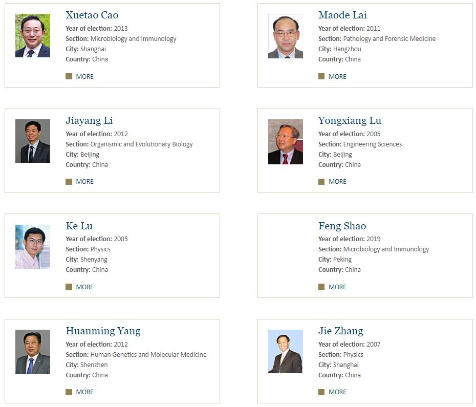 截止到2019年,一共有8位中国籍学者入选德国国家科学院院士,他们分别是:
