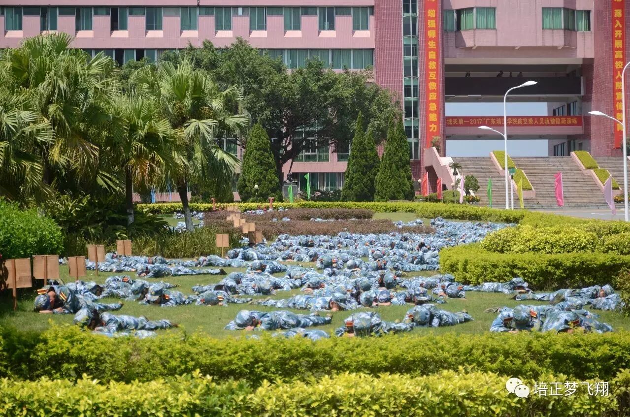9月16日上午11:30,广州全市鸣响防空警报,“羊城天盾—2017”广东培正学院防空袭人员疏散隐蔽演练正式开始。花都区建设局副局长兼演练现场指挥长林勇、我校张曙光校长、杨松书记、程玮副校长、赵教务长、高文翔助理校长、黄观德助理校长以及贾茜茜校长助理观看了本次演练。