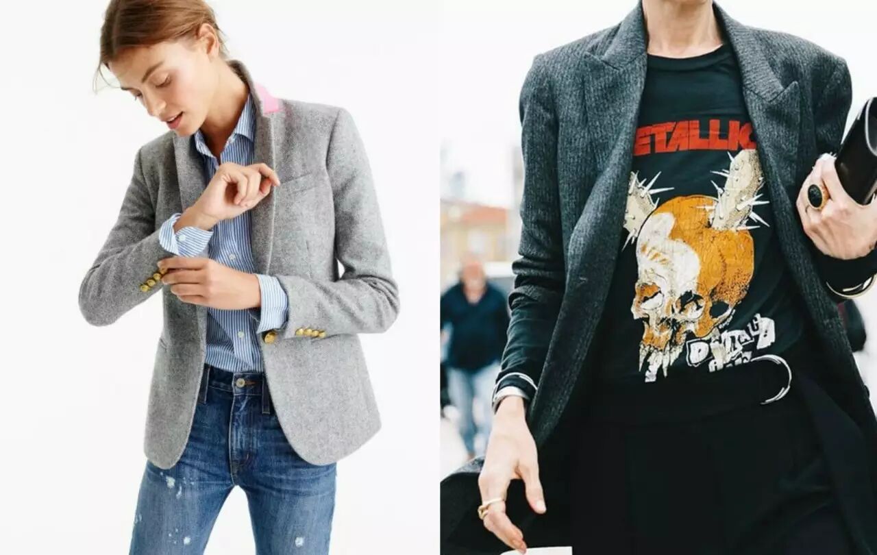 将西装外套和牛仔裤/休闲T恤混搭也是打破原本的单调的好方法。如果你是个喜欢走帅气风的妹子,这种搭配再适合你不过啦。