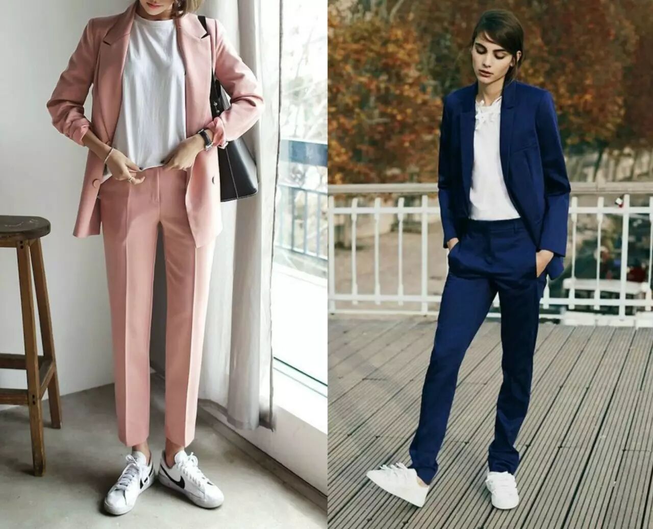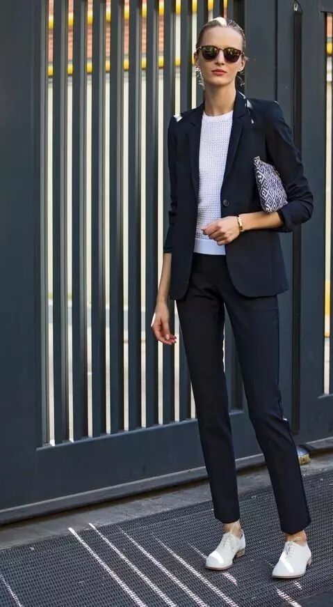 搭配牛津鞋这一类的不仅舒适还很有英伦风呢。这样半休闲穿搭的优势是不仅没有小白鞋那么随意,也不会有高跟鞋那么磨脚。经常要外出办事的话可以这样穿哦!