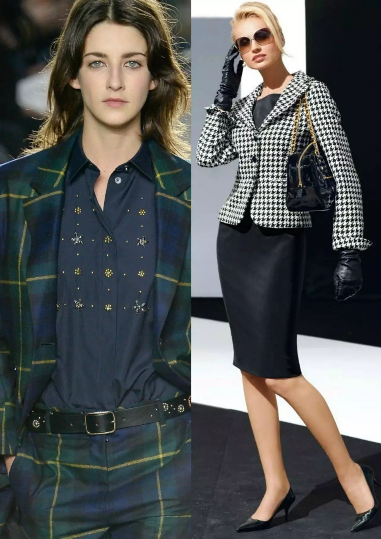 羊毛质感的西装总有一股浓浓的复古风。其中最经典的就是小香风西装。想必大家也都知道小香风系列如果穿不好是会很low的,所以不要轻易尝试哦~