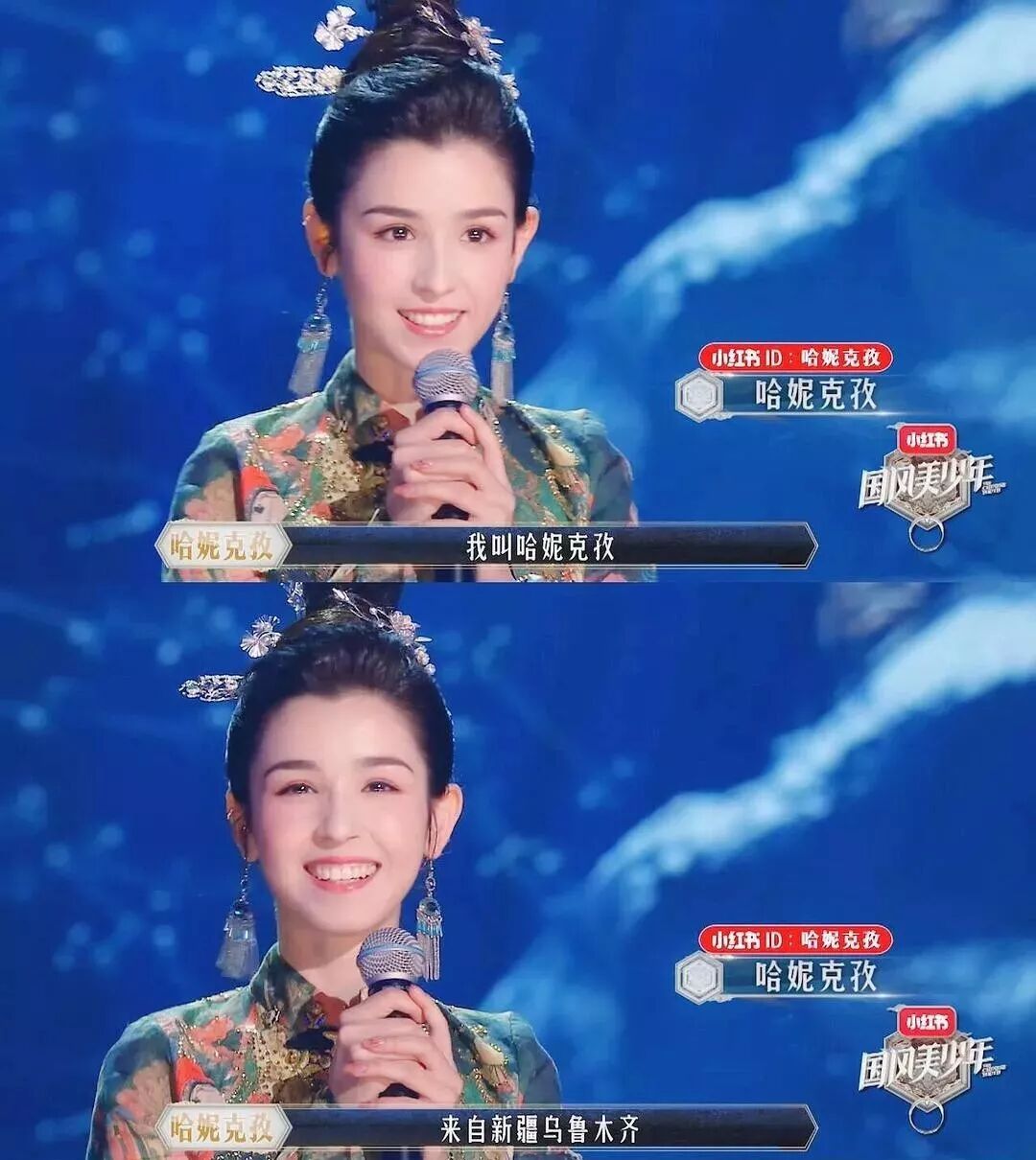 而且不得不说,梦幻的舞台设计加上精致的妆发,确实很给哈尼克孜的颜值加分。