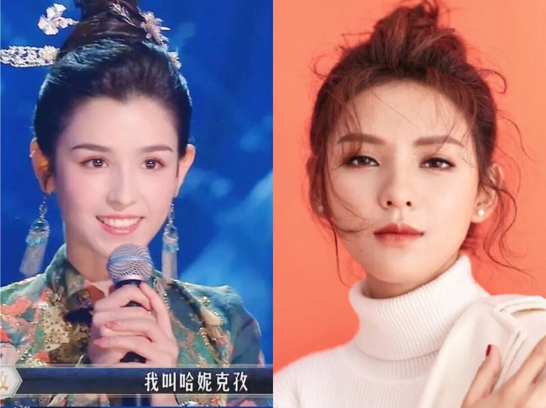 侧脸以及微笑像古力娜扎,尤其是嘴巴和牙齿,但仔细看会发现两个人的鼻子很不一样,娜扎的鼻子更加小巧,偏柔美;哈尼克孜的鼻尖长,更显英气。