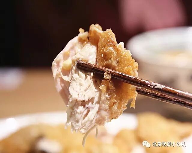 提前经过腌制、清蒸等工序的鸡肉,水嫩顺滑,鸡皮炒鸡酥!而且竟然和鸡肉一样都是轻轻一抿就能咽的程度。