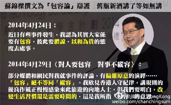 那么支持“占中”的那些话怎么解释呢?张敬轩说,他只是关心学生,被有政治取向的媒体曲解了。