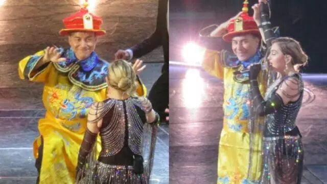 国际乐坛天后麦当娜澳门站演唱会结束,首场请了粉丝陈奕迅上台,尾场则请了打扮成清朝皇帝的粉丝上台!