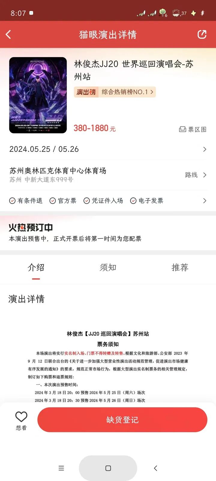 3月18日晚上8点,林俊杰JJ20世界巡回演唱会苏州站正式开始售票。魏女士早早地在猫眼APP上就做了信息登记。