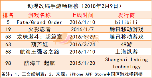 漫改手游方面,本周有6款手游进入前100,其中《Fate》进入前10。IP《航海王》有两款手游进入了前100。《葫芦娃》是唯一的中国IP。