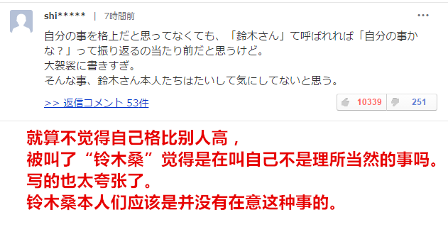加上两人的片酬相近,在NHK内的女优格也差不多。但是两人都觉得自己比对方”格“更高一点,所以叫”铃木桑“的时候都以为是叫自己。