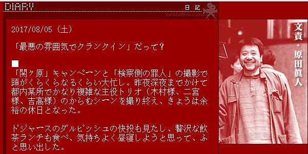 导演原田真人在第二天也更新了博客责骂了这些小报,因为新闻是所谓的“东宝关系者”透露的,他就说staff就有100人,坐在外围的所谓“关系者”,对他们来说就是无关系者。