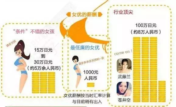 至于男优,地位要比女优低,赚的也就更少了。日本顶级男优,一部AV的片酬大约是5000左右,要挣100万大约要拍200部AV,连续工作大约500天。而普通职业男优片酬大约3000一部,最底层的男优更是惨不忍睹,甚至只有300左右。算下来,要挣一百万之前,可能先精尽而亡了。