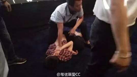 刘亦菲当时正与台下粉丝互动握手,一疯狂男子突然冲到台前一把抱住刘亦菲,并把刘亦菲推倒在地,现场可以听到扑通一声。