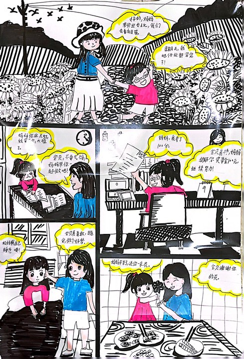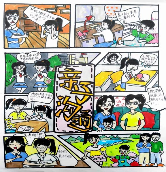为加强家长与子女之间的有效沟通,营造温馨和睦的家庭氛围,濮小少工委开展了“亲子沟通”主题心理漫画活动。少先队员们借助漫画、儿童画等表达形式,通过童真的笔触,展现了真诚、有爱的亲子沟通画面,体现了和谐的亲子关系对孩子终身成长的重要性。下面,让我们一起来欣赏队员们的绘画作品吧。