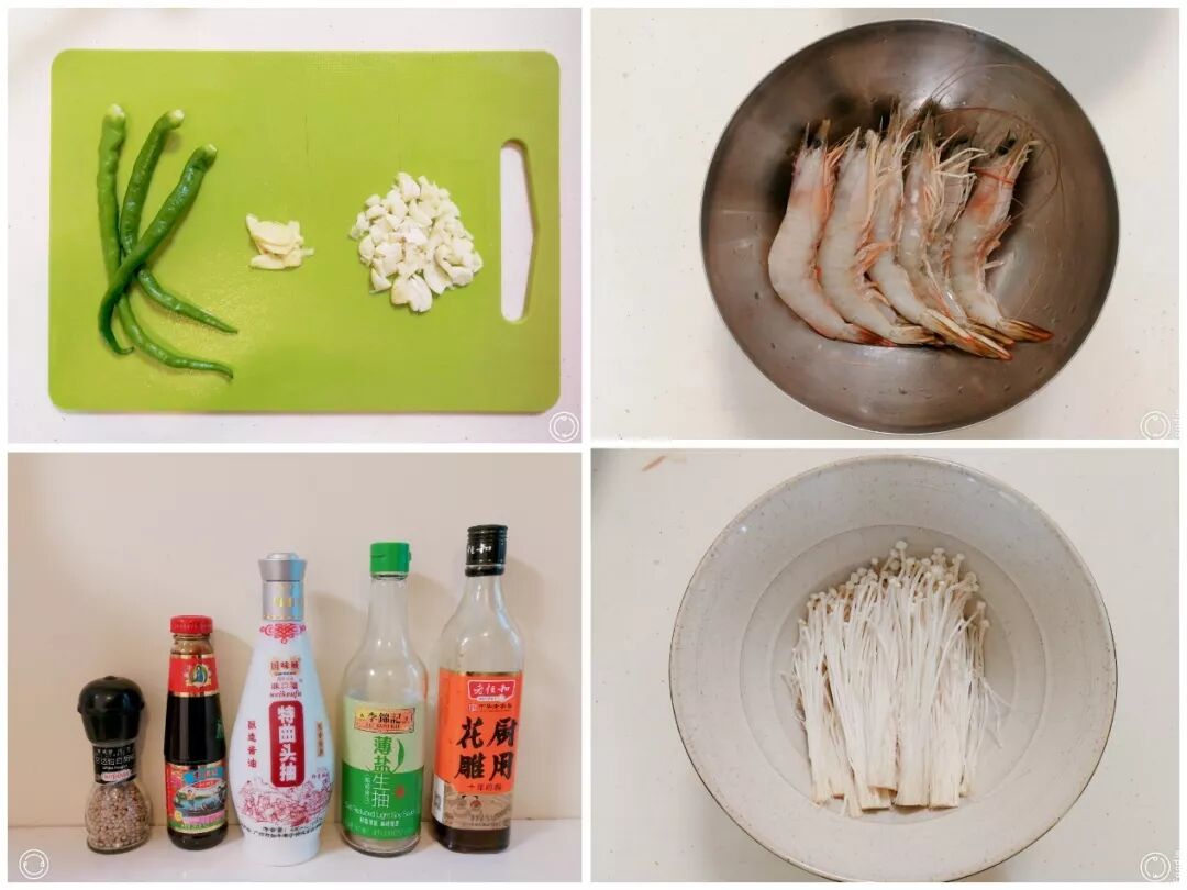 金针菇:一捆。它会吸收虾和配料的香味,是本道菜的精髓部分;