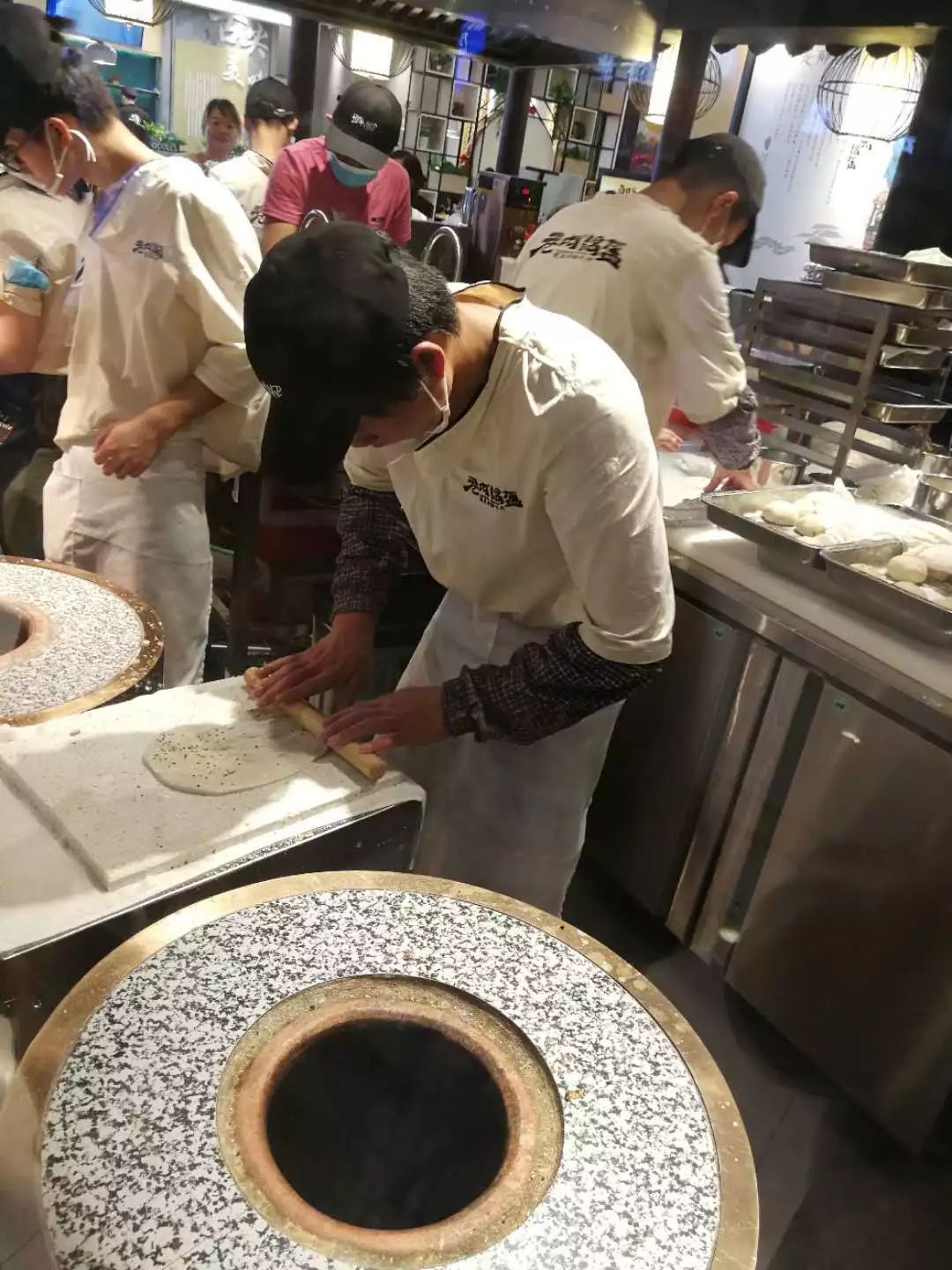 锅盔是啥:一坨面团,揉入梅菜干或者牛肉、猪肉等,搓成一块扁平的饼,然后凭着师傅的手速和力道,吧唧一下,把这饼黏在一个烧热的庐壁边上,让里面的炭火将其烘干。我喜欢吃的锅盔是薄、脆、外酥里嫩。