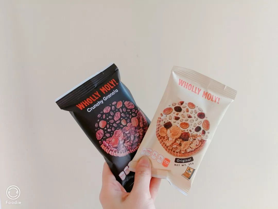 我吃的是WhollyMoly!好哩!家的granola,每盒6包,小小一包,分量刚好,携带方便,早上就像冲花茶一样把granola倒入酸奶/牛奶里,优雅从容。