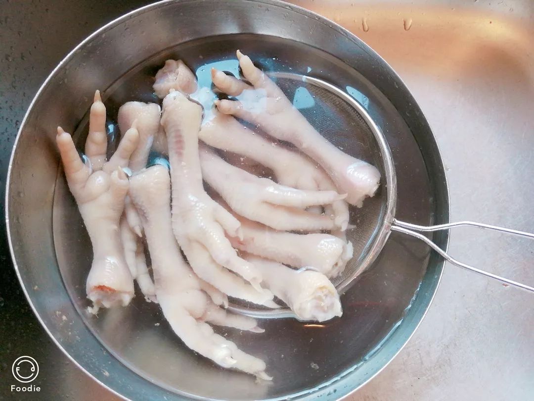 关键点来了!如果喜欢吃爽口有韧劲的鸡脚,记得用冷水泡15分钟左右;如果喜欢吃软烂的鸡脚,冲洗后,泡2分钟即可。