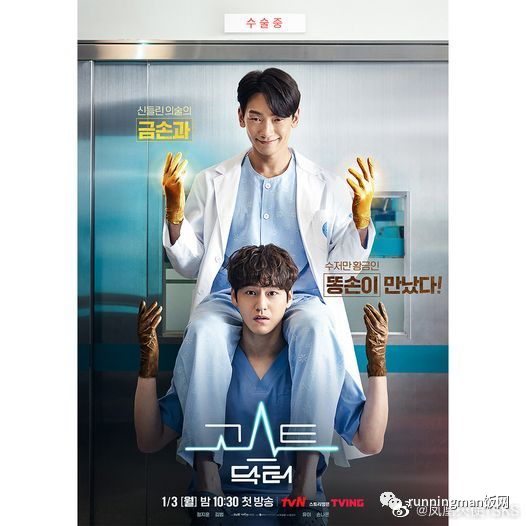 由Rain郑智薰、金汎、U-IE金宥真、孙娜恩主演的tvN新月火剧《Ghost Doctor》公布主海报,展现了金手与臭手相遇的画面。《Ghost Doctor》讲述了背景、实力以及脾气都完全相反的两个医生以‘意外附身’为开始,随着灵魂与身体合为一体而展开的灵异医学故事,由《名不虚传》的金恩喜编剧执笔,将于2022年1月3日首播。
