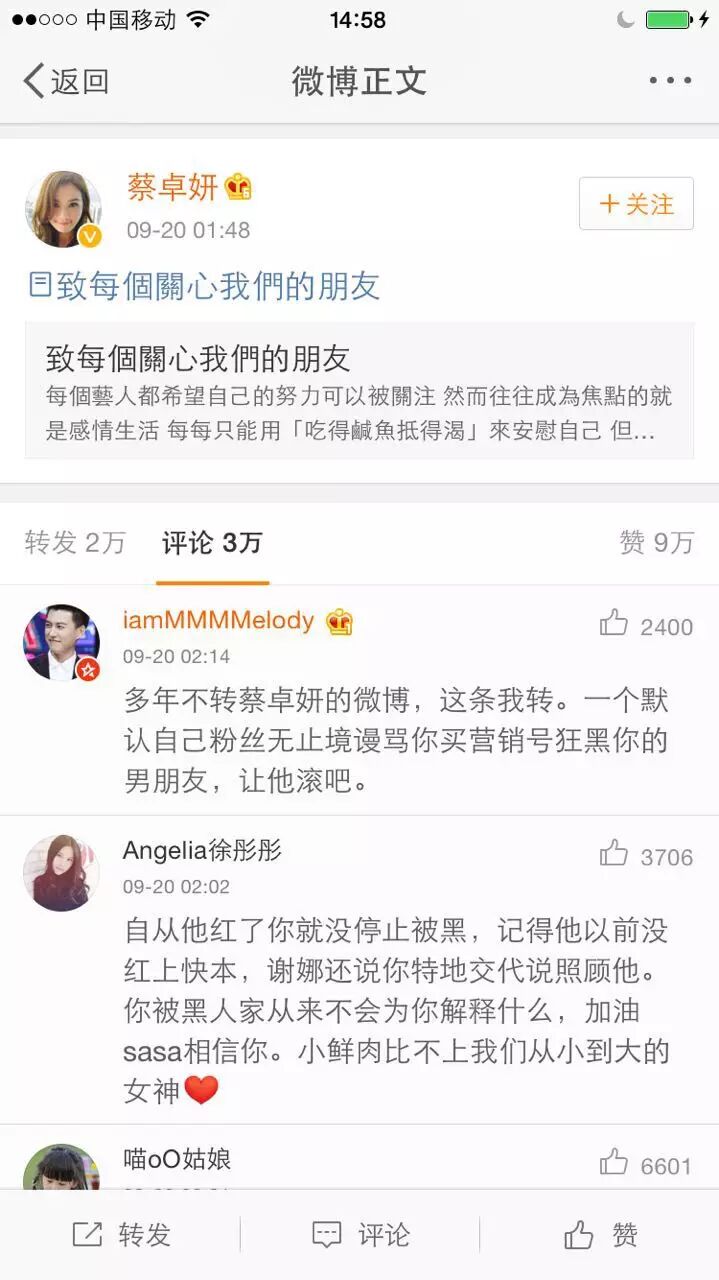 今天一早好人缘的蔡卓妍就受到了身边众多好友对她的