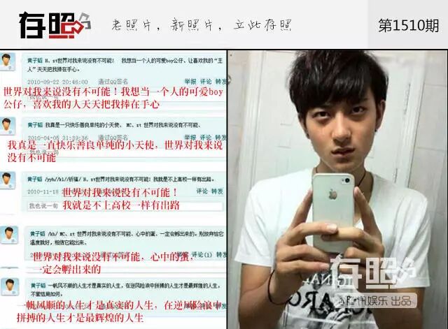 ▲图左黄子韬qq签名,图右黄子韬早年照片