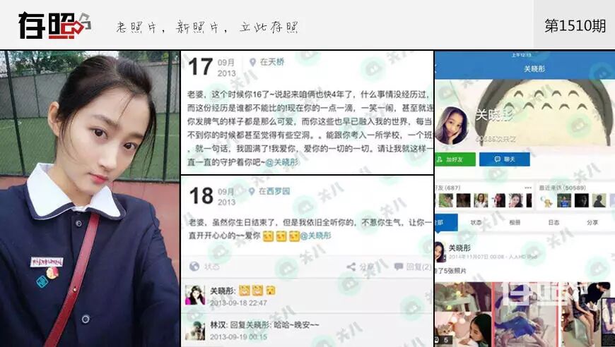 ▲图中为关晓彤与男友甜言蜜语,图右关晓彤人人账号