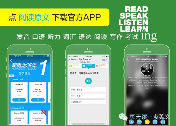 “每天读一点英文”的官方APP可以带着大家每天进行系统的英语学习,并且有很多自测的功能~下载通道也很便捷,大家直接点击文末左下方的“阅读原文”,就可以直接进入下载页面了哦~