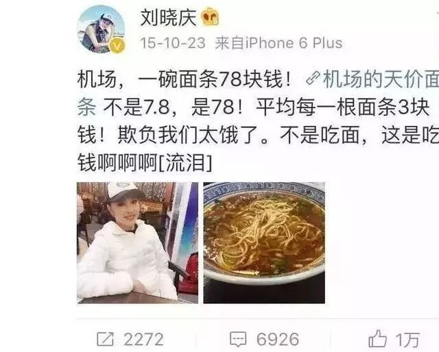 且不说我们普通人的消费能力和遭遇,单说那些天天东奔西跑坐飞机的明星们,他们遇到的机场高价饭。