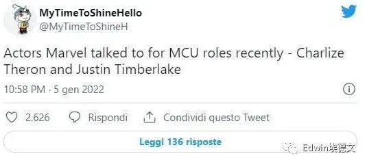 推上的博主MyTimeToShine曾多次爆料漫威电影相关的信息,后来都被证实了他所言都是真的,这次爆料贾老板Justin Timberlake和查理兹·塞隆Charlize Theron和漫威谈判角色,应该也是真的。