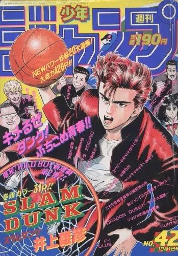 (《周刊少年JUMP》1990年第42期封面,即《SLAM DUNK》刊登的第一期)