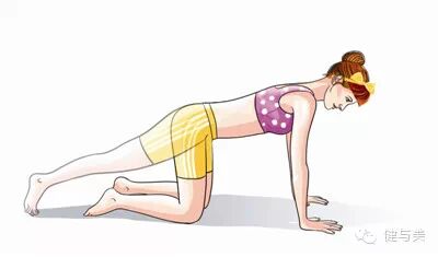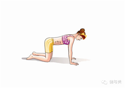 准备动作:四点跪姿,髋关节和膝关节垂直,肩关节和腕关节垂直,脊椎在中立位(胸椎自然后屈,腰椎自然前屈)。