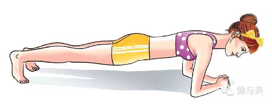 动作执行:保持身体稳定,停留1分钟,可以将膝关节离开地面,做完全式平板支撑。在动作标准的情况下,保持时间越长越好。