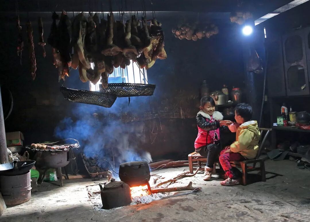 瞬间,我脑子里闪现的画面就是:剪影、留白,我想用这两种艺术手法很适合表现乡村百姓幸福、安详的生活。于是我把电池放手里摩擦发热,迅速装进电池盒,举起照相机连续拍了几张,就再也按不下快门了。