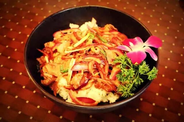 鲜嫩爽滑的牛肉和酱汁完美地融合在一起,口感丰富而又浑然天成。一碗烫嘴的,带汤汁的盖饭显然比温热的汉堡要来得舒服,轻薄的牛肉、甜丝丝的洋葱和混着酱汁的米饭在口里慢慢融合,你就会知道什么才是一顿慰藉心灵的料理。